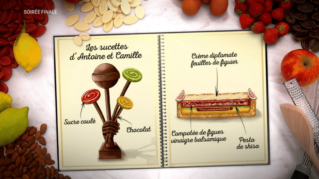 Das Zweiergespann Antoine und Camille kreierte neben Les Sucettes (Die Lollies) ebenfalls ein Backwerk, das jedoch nicht ganz an das Niveau der anderen heranreichte, sodass die beiden Konditoren kurz vor dem Finale aus dem Wettbewerb ausschieden.