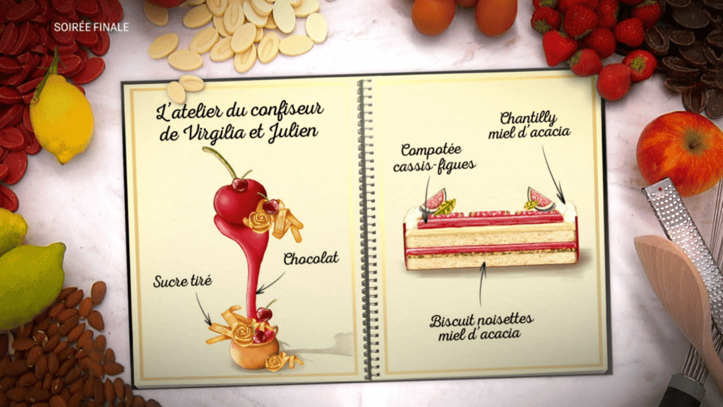 Anlässlich dieses großen Finales unterstützten nicht weniger als fünf prämierte Konditormeister:innen die Jury bestehend aus Cyril Lignac und Christelle Brua bei der Bewertung der Wettbewerber:innen und gaben jeweils ein Kriterium für den ersten Wettbewerb vor: