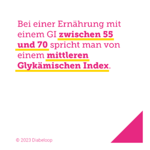 Bei einer Ernährung mit einem Glykämischen Index zwischen 55 und 70 spricht man von einem mittleren Glykämischen Index.